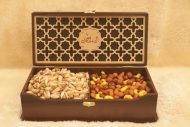 محتویات پک : پسته اکبری زعفرانی درجه یک 450 گرم – مغز بادام شور درجه یک 150 گرم – بادام هندی زعفرانی 150 گرم. فندق شور 150 گرم.